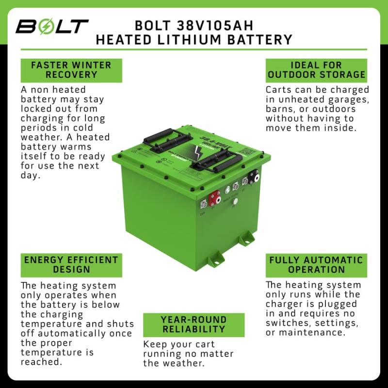 A heated battery temperature charge and discharge specifications still operate the same as standard batteries