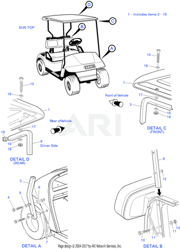 Genuine E-Z-GO - Sun Top 54" Tan Part # 75040G06
